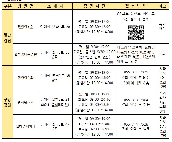 4. 검진기간 : 5월 2일 ~ 10월 31일(가능하면 여름방학까지)