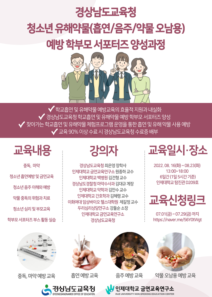 청소년 유해약물예방 학부모 서포터즈 양성과정 안내