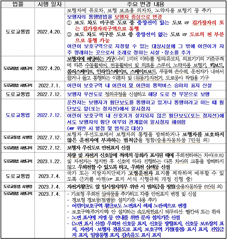 2022년 이후 학생 통학과 관련되어 개정된 도로 교통법을 안내합니다.