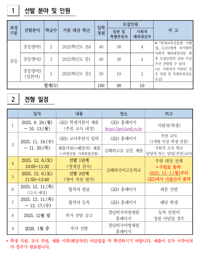 2026학년도 경상남도외국어영재교육원 신입생 선발 계획 안내